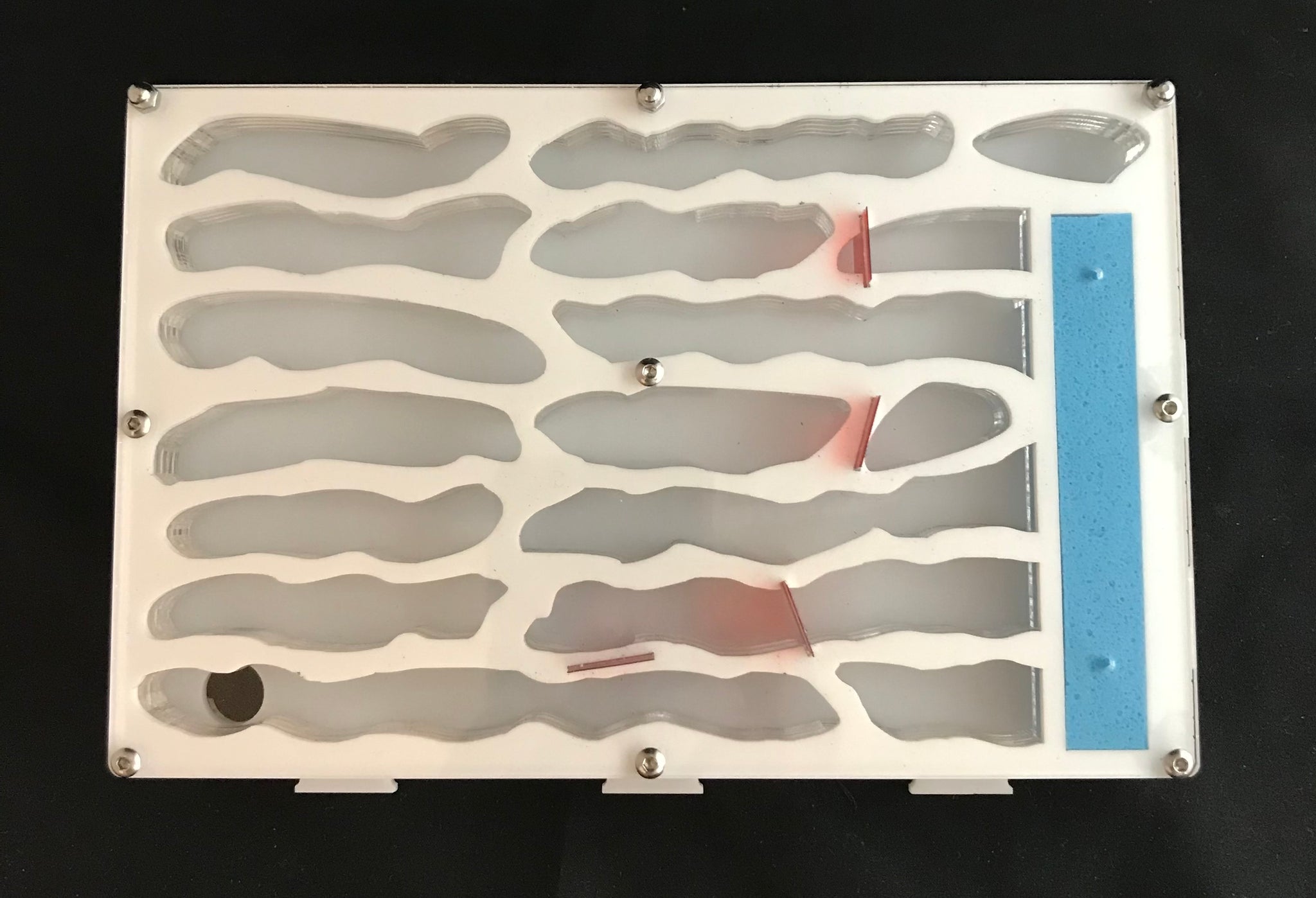 4 gates, separating the 7 levels of nest, to allow progressive colony expansion.